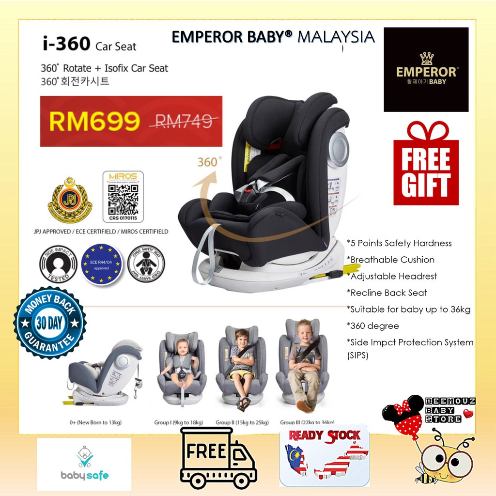 Miros Approved Jpj Approved Ece Certified Emperor Baby I 360 Isofix Baby Car Seat Nb To 6years Old Shopee Malaysia