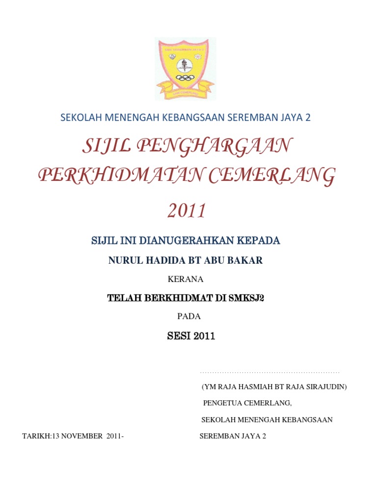 Contoh Sijil Penghargaan Dan Boleh Diedit