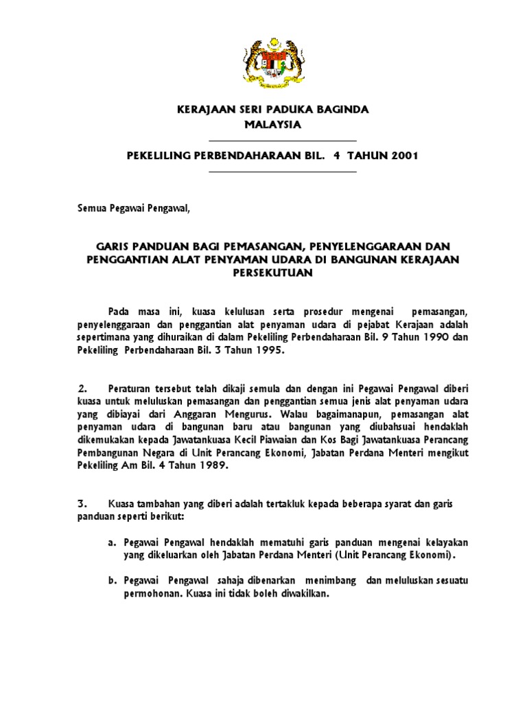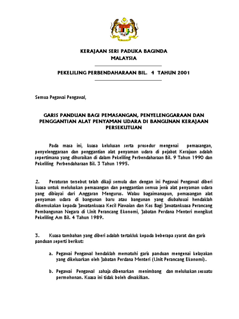 Kerajaan Seri Paduka Baginda Malaysia Pekeliling Perbendaharaan Bil 4 Tahun 2001 Semua Pegawai Pengawal Garis Panduan B Projects To Try Fails Tri