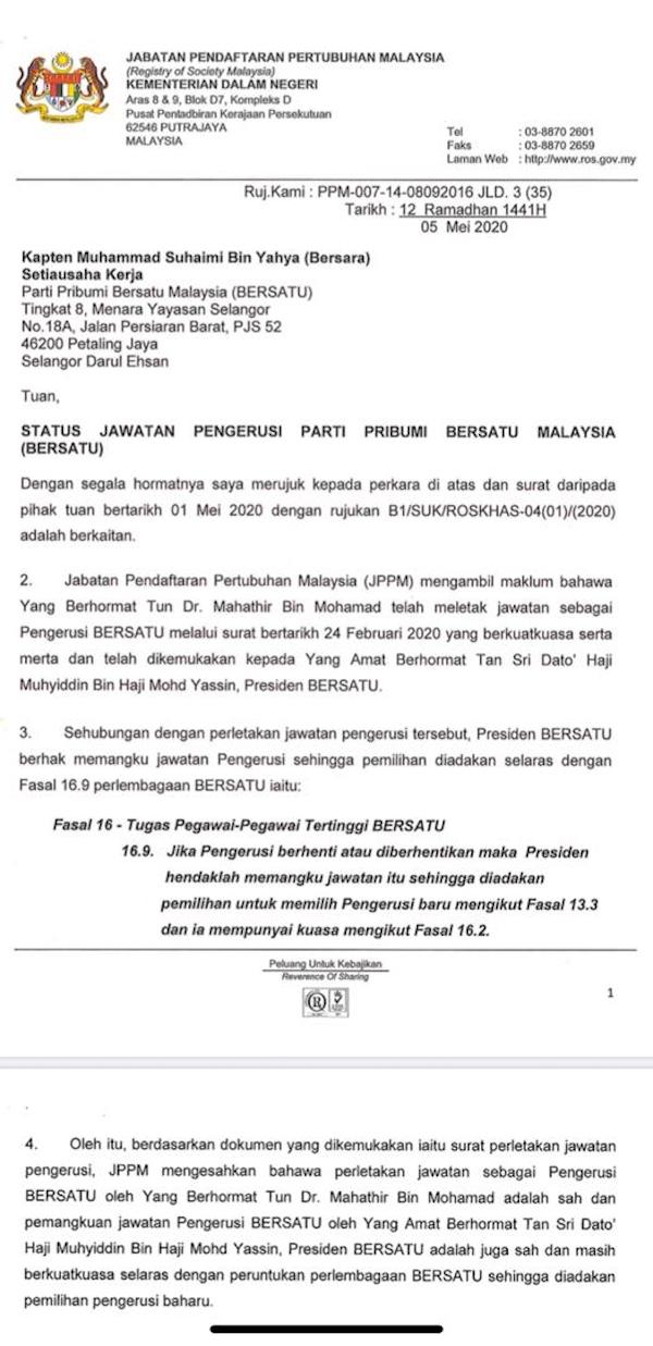 Malaysians Must Know The Truth Officially Tun Dr Mahathir Is Out Of Bersatu Leadership